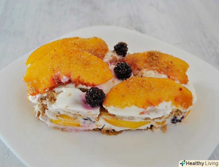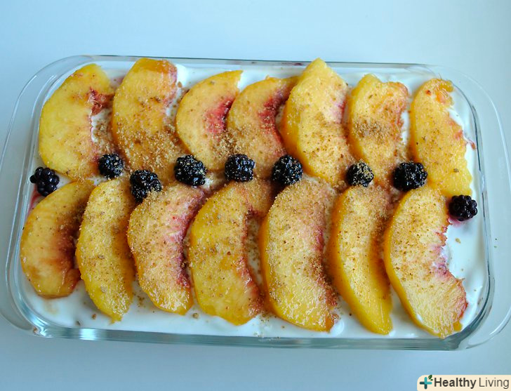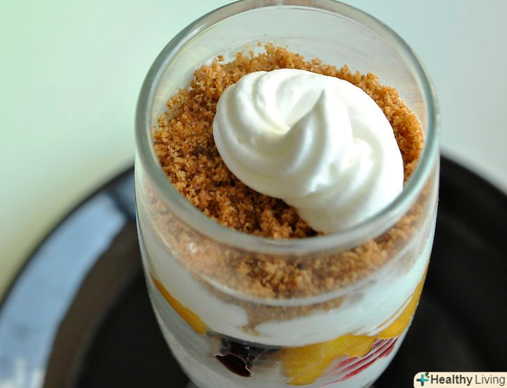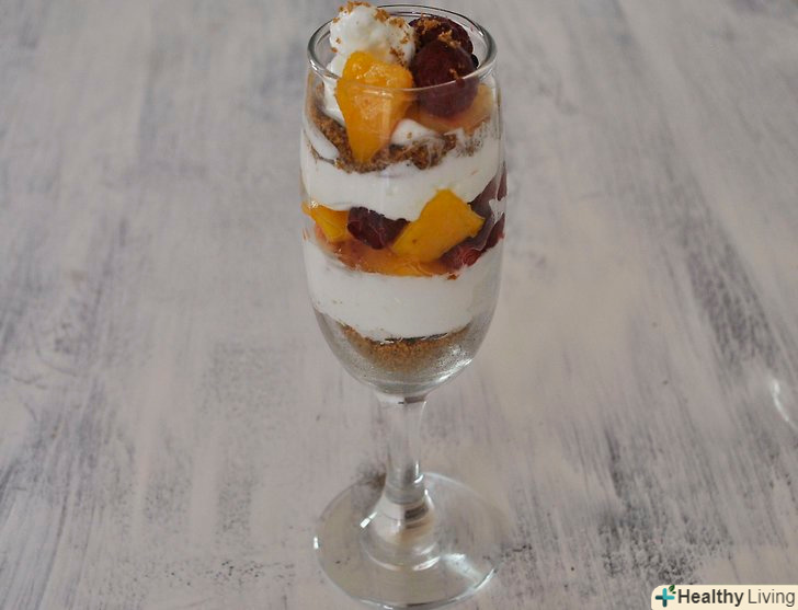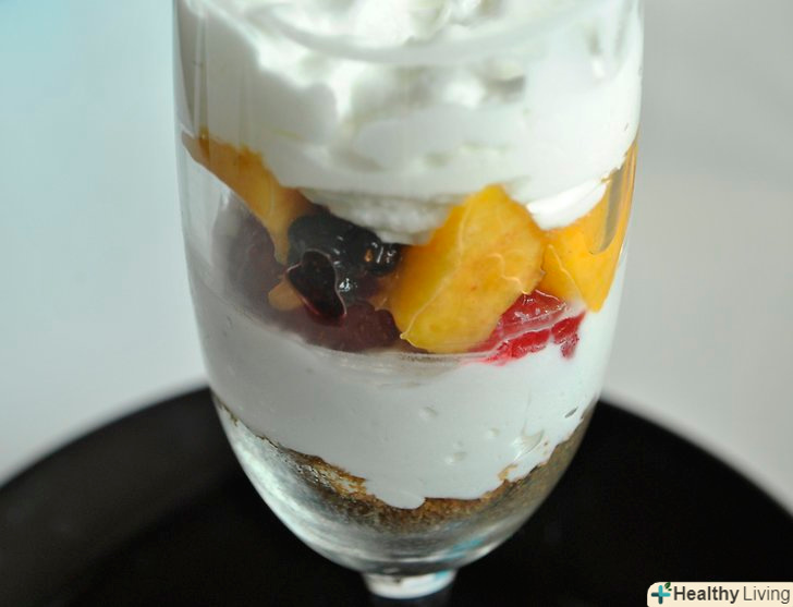 Прикрасьте десерт залишилися фруктами і невеликим шматочком крекеру Грем.також можна посипати десерт крихтою і прикрасити коктейльною вишнею. Однак прикрашати десерт необов'язково.
