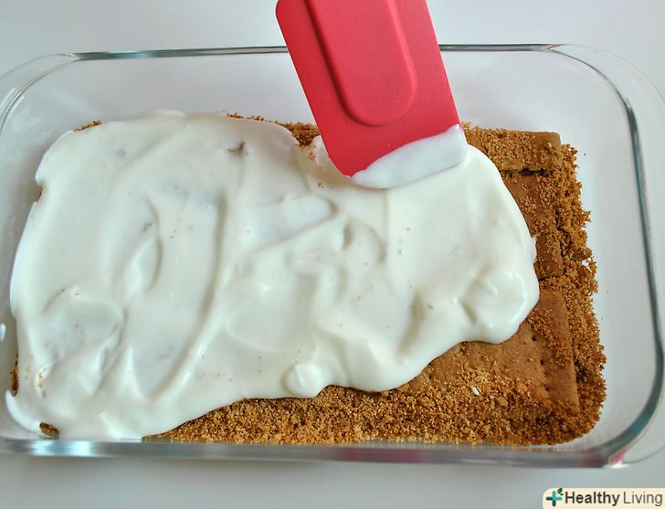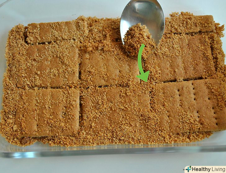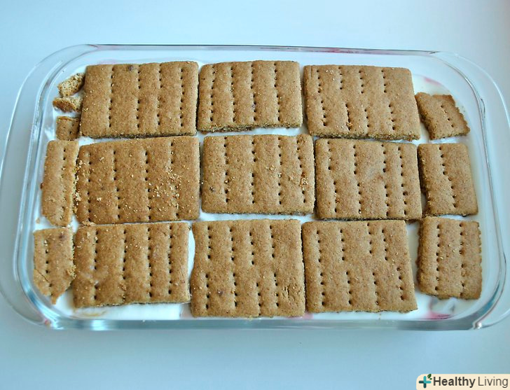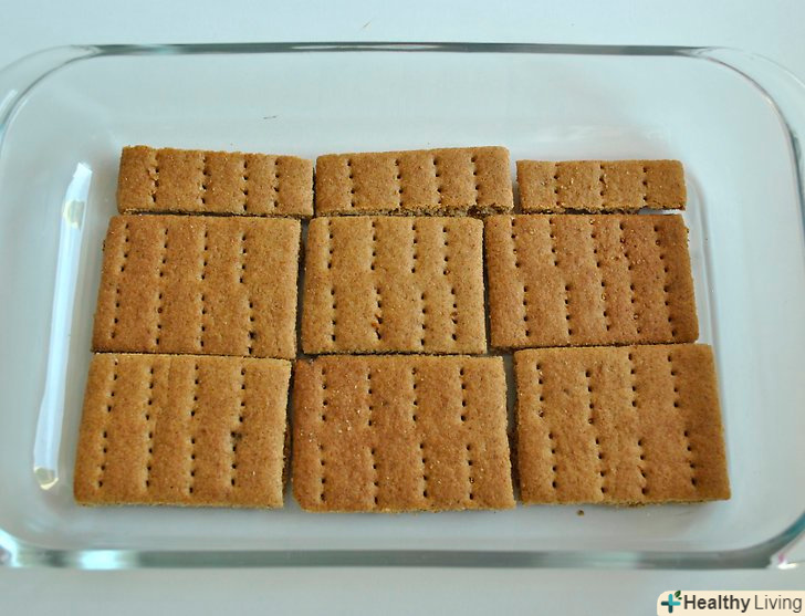 Покладіть крекери на дно квадратного блюда (20.32 см). [3] якщо необхідно, ви можете розділити крекери на дві половинки, щоб дно страви було покрито повністю. Решта крекери можна використовувати для наступних шарів.