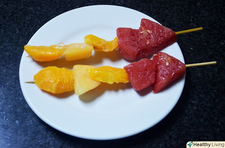 Подумайте про створення замороженого фруктового шашлику.замість заморожування плодів окремо, наріжте фрукти на шматки і нанизайте на шампур, як забажаєте. Покладіть в морозильну камеру і вийміть, коли заморозиться. У розпал літа виходить відмінний барбекю або перекус біля басейну.