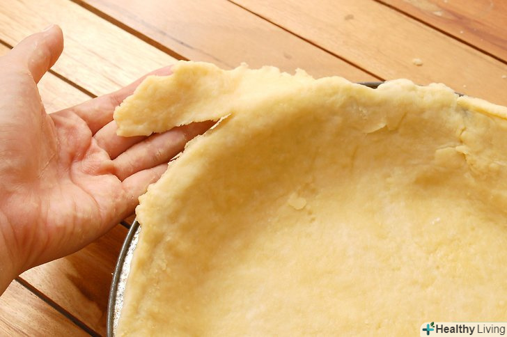 Обережно викладіть пласт тіста на форму, намагаючись не порвати його. Притисніть тісто до форми.
