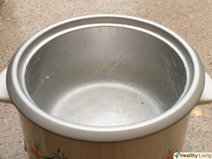 Зніміть кришку з приладу.це знизить температуру всередині пристрою і стане початковим етапом процесу очищення. У міру виходу жар висушить клейкі залишки рису, які пристали до стінок. Після цього їх можна буде без праці зішкребти.[15]- Не мийте нагріту рисоварку. Зачекайте, поки вона повністю охолоне, перш ніж приступати до очищення.[16]