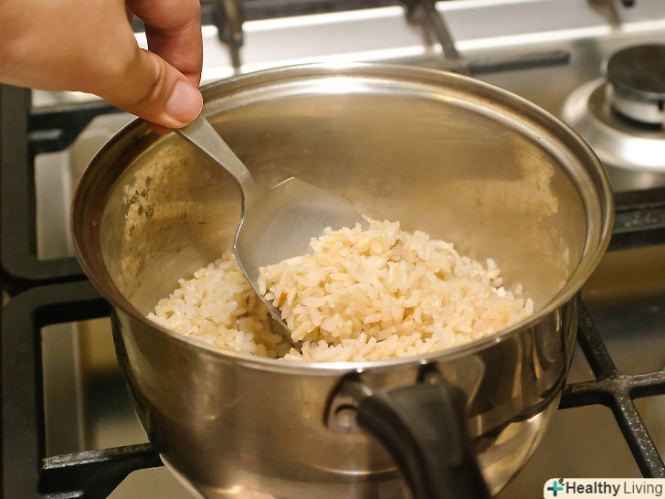 - Дуже важливо зменшити вогонь відразу, як тільки вода закипить. Рис важко приготувати на інтенсивному вогні, так як при цьому вода швидко випарується. Також зернятка можуть просто розколотися.[16]