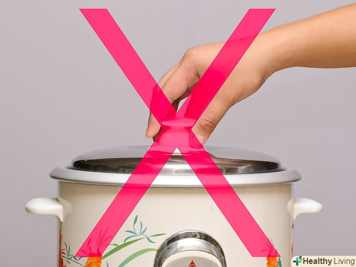 Не знімайте кришку, поки рис готується.як і в першому методі, не знімайте кришку рисоварки, інакше необхідний для приготування страви пар почне випаровуватися.[24]