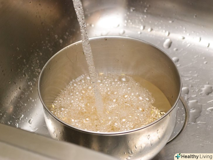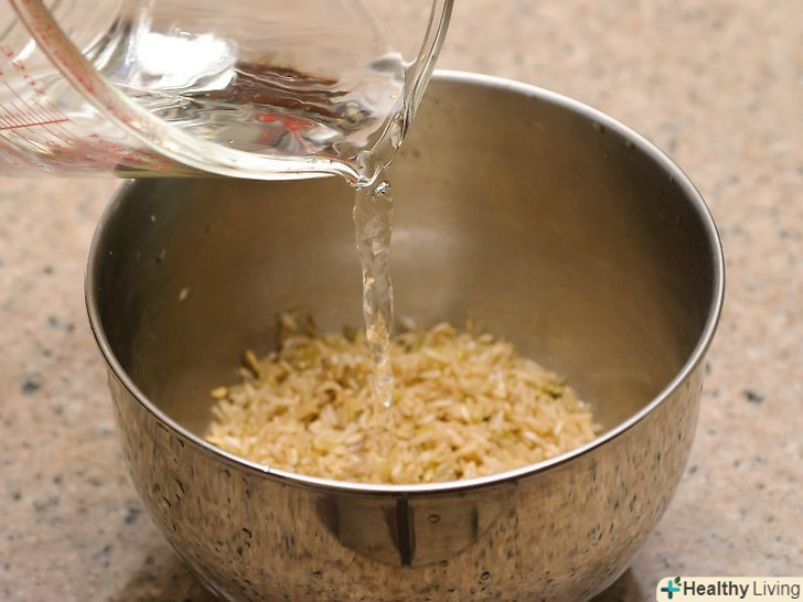 Промийте рис.Руками перемішуйте рис під водою, поки вона не стане каламутною, а по краях не з'явиться піна.[2]- Хоча вода і змиває деякі поживні речовини, які містяться в коричневому рисі басматі, ви повинні розуміти, що його завозять здалеку і можуть обробляти тальком, порошкоподібною глюкозою і рисовим порошком. Тому знавці даної області рекомендують все-таки промивати його.