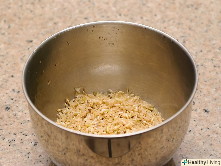 Злийте воду з рису.вилийте воду крізь сітчастий фільтр, нахиливши миску на одну сторону. Можна одночасно притримувати рис тарілкою, щоб він не висипався.[4]