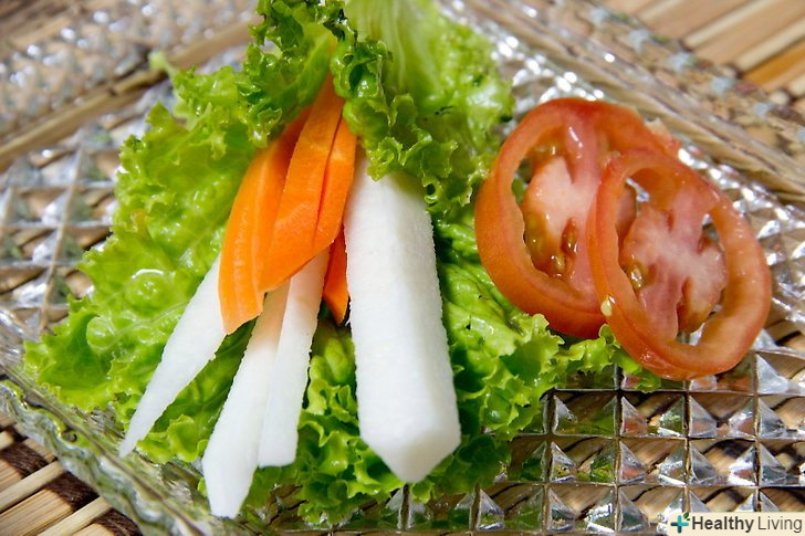 Поступовий перехід.Включайте сирі продукти в вашу дієту поступово.- Їжте різноманітну їжу. Складіть список овочів, трав, горіхів і насіння, які ви хочете включити в свій раціон. Список повинен відповідати сезону, і складатися з різноманітних продуктів.