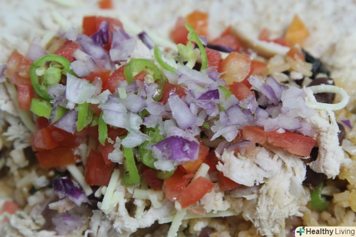 Коли ви вирішите яке м'ясо ви хочете використовувати, то золотистий буріто вже майже буде у вас в руках. Ви можете покласти інгредієнти на торт так, як хочете, - покриваючи один інгредієнт іншим-але більшість любителів буріто вважає за краще робити це певним способом. Ось як.