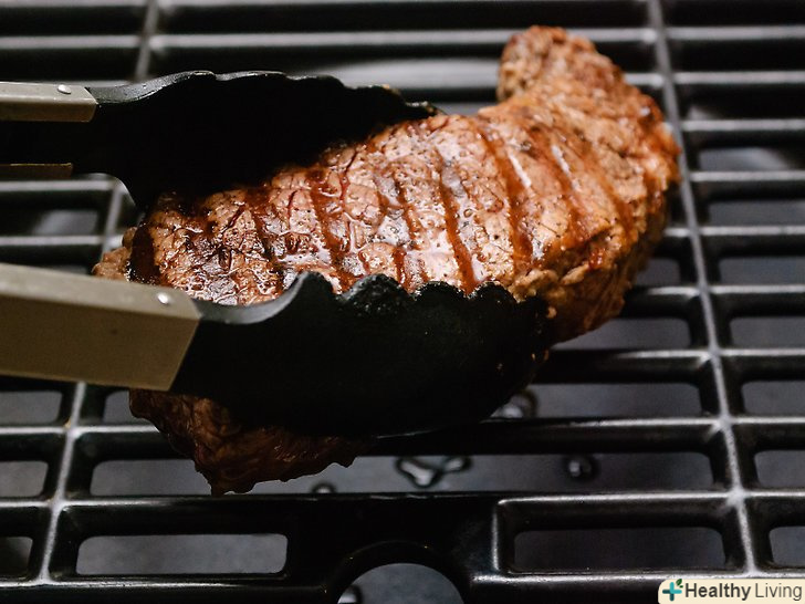 Приготуйте стейк на грилі.злегка змастіть решітку гриля. Розігрійте гриль до середньо-високої температури. Дістаньте стейк з маринаду і приправте з обох сторін сіллю і перцем. Приготуйте стейк на грилі, періодично перевертаючи. Коли стейк буде готовий, приберіть його з гриля і залиште "відпочити" приблизно на 5 хвилин. Потім наріжте м'ясо тонкими шматочками.