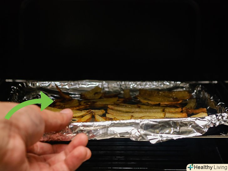 Приготуйте картопля-фрі .можете купити заморожені, заздалегідь нарізані шматочки картоплі для приготування картоплі-фрі, і просто обсмажити їх, а можете зробити все з нуля з сирої картоплі. Розмістіть картоплю в один шар на деко і запечіть або ж обсмажте у фритюрі — в залежності від ваших уподобань або вказівок на упаковці.