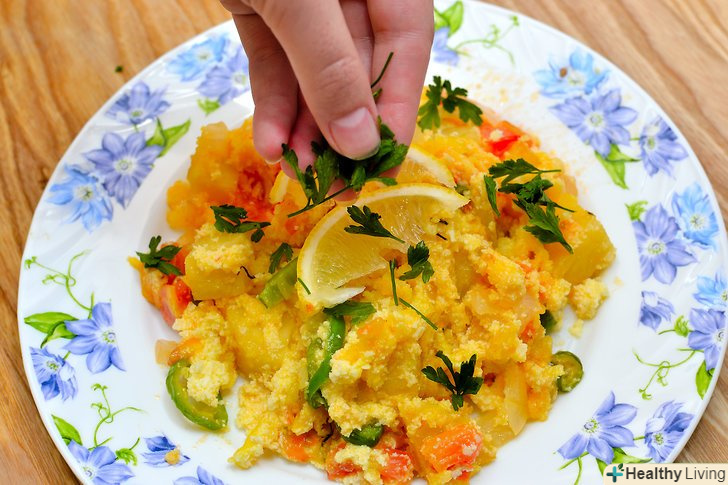 Прикрасьте нарізаними листям кінзи і поха готова!
