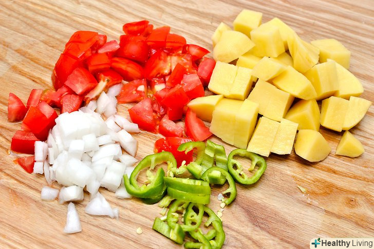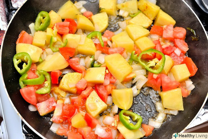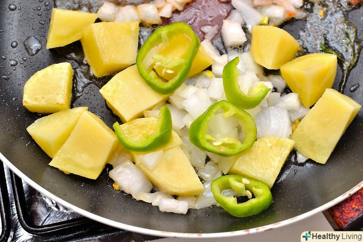 Обсмажте картоплю, потім додайте цибулю, зелений чилі (нарізаний) і сіль за смаком.
