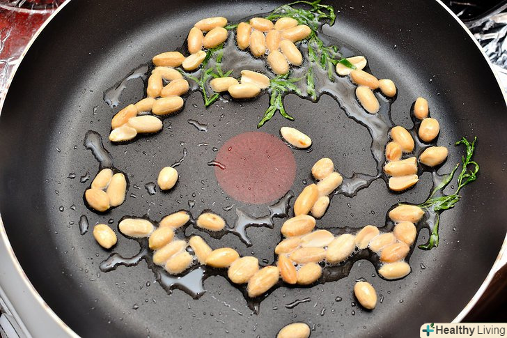 Візьміть сковороду, додайте на неї масло, потім додайте листя каррі і арахіс.