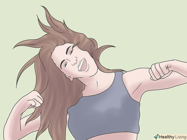 Розслабтеся.щоб насолодитися зумбою, вам потрібно в першу чергу розслабитися. Танцюйте, немов ніхто не дивиться, або немов ви знову повернулися в дитинство. Насправді, це не просто поширена цитата про те, що потрібно танцювати так, немов вас ніхто не бачить. Думаєте, комусь є справа до того, повертаєтеся ви наліво, коли всі рухаються направо? Та нікому. Якщо ви розслаблені і насолоджуєтеся ситуацією, то ви все робите правильно.- Якщо ви не впевнені в своїх рухах, то у вас не вийде добре позайматися. Якщо ви намагаєтеся вирівнюватися по лінії, якщо ви тримаєте руки з боків, то вам буде зовсім не цікаво, ви не спітнієте і, можливо, ніколи на таке заняття не повернетеся. Тому розслабтеся!