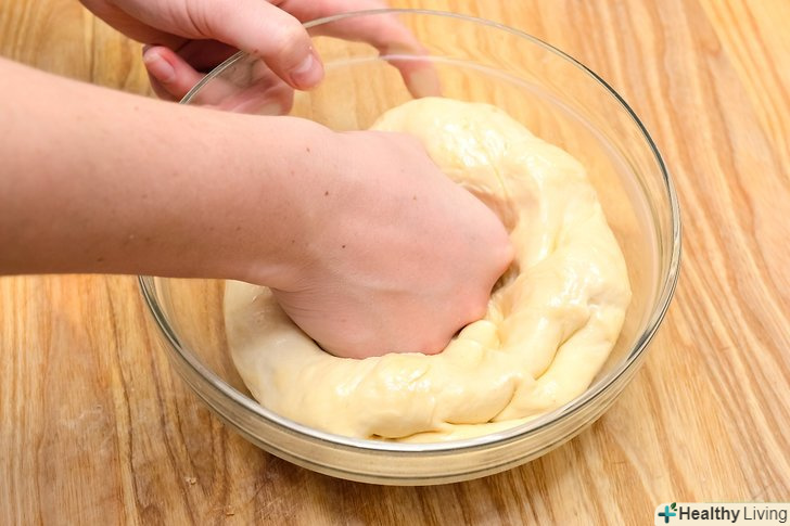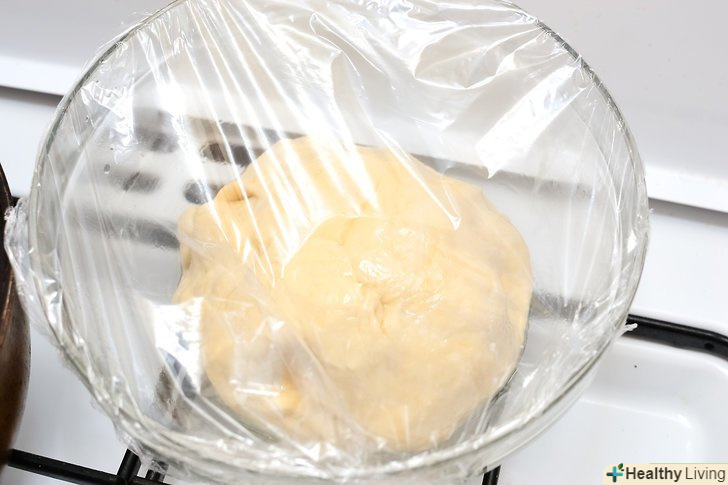 Щільно оберніть миску харчовою плівкою.залиште миску в теплій кімнаті на годину. Зачекайте, коли тісто подвоїться в розмірі.- Ви можете зробити тісто смачніше, помістивши його в холодильник принаймні на 3-6 годин.