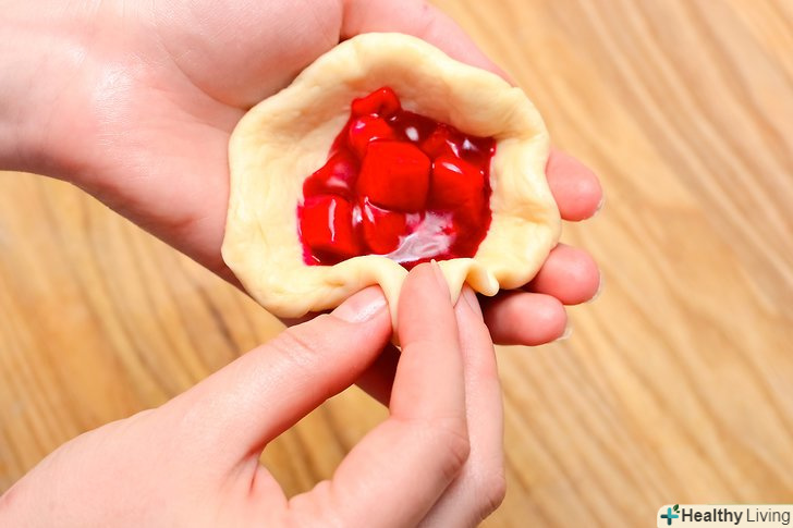 Складіть краї, щоб накрити начинку тестом. Продовжуйте затискати і, одночасно, скручувати краю.