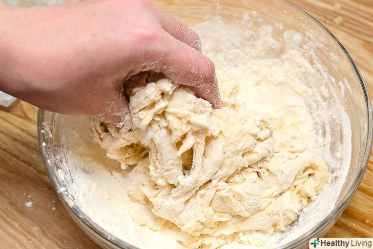 Змішайте і місіть інгредієнти, коли почне формуватися тісто.додайте решту рідини і продовжуйте місити. Ви дізнаєтеся що тісто вже готове, коли почнуть з'являтися довгі пасма.