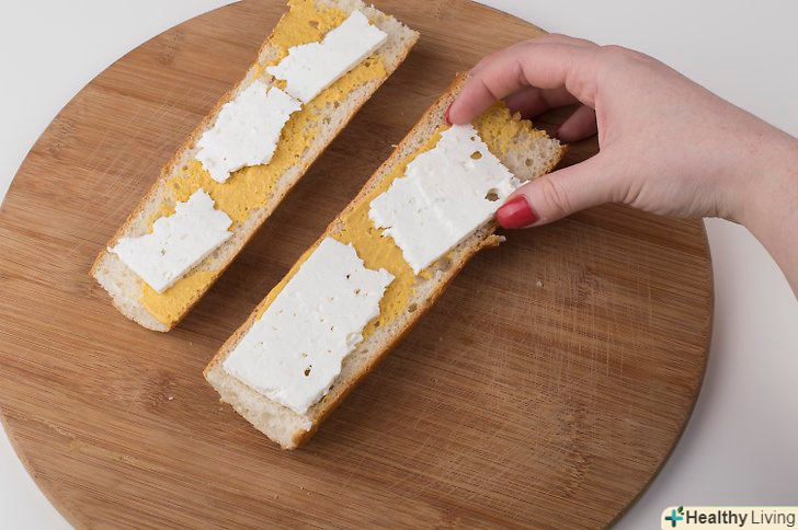 Покладіть сир.покладіть поверх гірчиці з обох сторін по шматочку швейцарського сиру.[4] у багатьох традиційних рецептах рекомендують використовувати сир, шинку і буженину в рівних пропорціях, але при бажанні ви можете змінити ці пропорції.