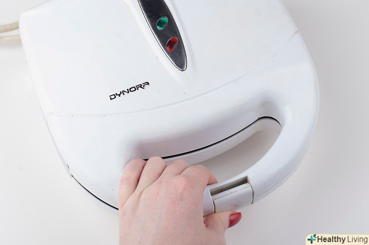 Притисніть сендвіч.коли тостер або вафельниця нагріється, покладіть сендвіч і притисніть так, щоб він стиснувся приблизно в три рази. Готуйте Кубинський сендвіч до утворення золотисто-коричневої скоринки і поки сир не розплавиться. Зазвичай це займає 2-3 хвилини з кожного боку.- Не забудьте намазати хліб маслом або ж скропити поверхню тостера або вафельниці кулінарним спреєм.