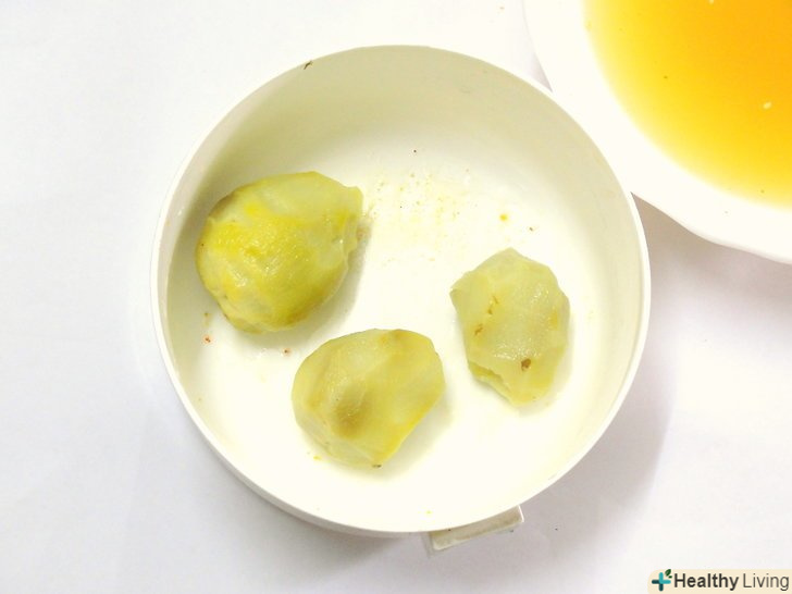 Очистіть картоплю і зваріть його в посудині з водою.додайте кілька шматочків курячого або овочевого кубика.
