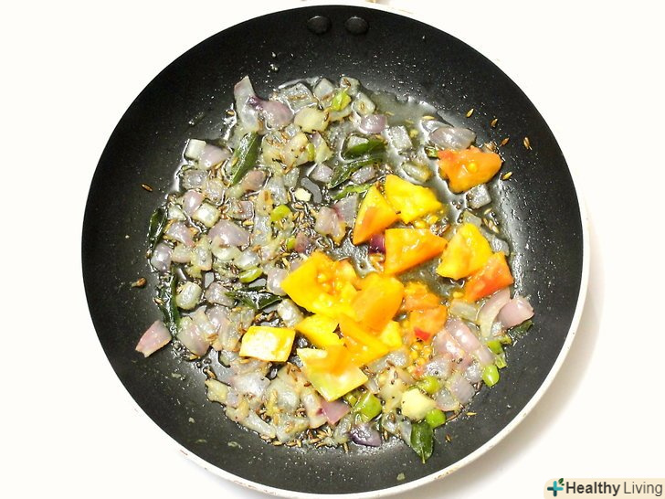 Коли цибуля стане м'яким і коричневим, додайте помідори і добре обсмажте.