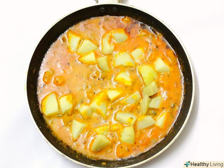 Налийте таку кількість води, використовуваної для варіння картоплі, щоб суміш стала густою.- Продовжуйте перемішувати суміш протягом декількох хвилин.