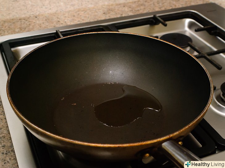 Нагрійте сковороду вок або глибоку сковорідку.не додавайте поки масло. Тільки нагрійте сковороду. Якщо у вас немає сковороди вок, використовуйте максимально глибоку сковороду, щоб при перемішуванні овочі не вивалювалися.- Не перегрівайте сковороду, інакше ви влаштуєте пожежу, коли наллєте на неї масло. Сковорода вок готова, коли крапля води випаровується з її поверхні протягом 2 секунд.