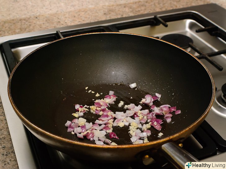 Приготуйте ароматні приправи.часник, імбир, перець чилі, цибуля-шалот та інші надають страві більш глибокий смак. Невелика кількість будь-якого з цих продуктів підійдуть. Не забудьте почистити часник, імбир і цибулю перед додаванням їх до овочів.- Подрібніть приправи якомога дрібніше, щоб вони віддали весь свій смак і аромат смаженим овочам.
