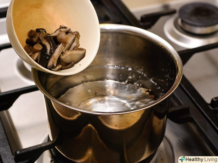 Вимочуйте сушені гриби в гарячій воді перед обсмажуванням.залиште сухі гриби в гарячій воді на 5-15 хвилин, потім злийте воду і обсушити їх перед обсмажуванням. Якщо ви покладете на сковороду сухі гриби, вони залишаться жорсткими і їх неможливо буде їсти.- Щоб вимочити сушені гриби, закип'ятіть воду, приберіть з вогню і покладіть гриби. Злийте воду, як тільки гриби стануть м'якими, зазвичай через 3-5 хвилин.