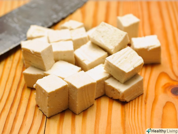 - Поріжте тофу на скибочки»на один укус". Використовуйте тверді сорти, щоб він не розвалився при обсмажуванні.