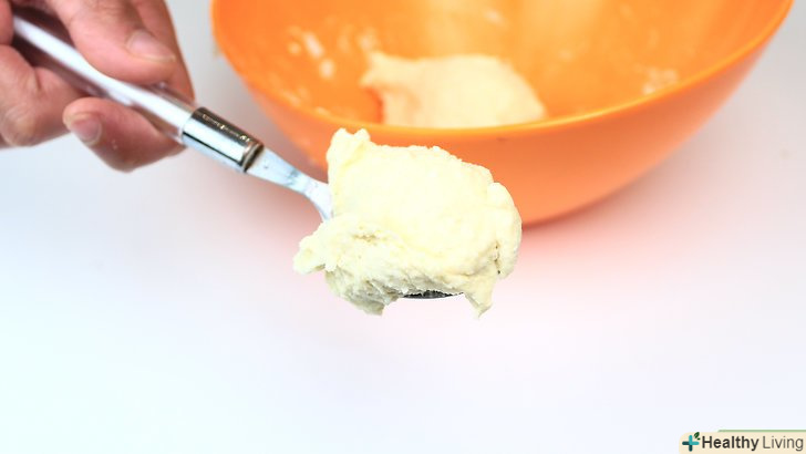 Змішайте масу і воду у великій мисці.додавайте воду поступово, щоб тісто вийшло рівномірним.- Змішайте до отримання однорідної, але не сухої або липкої, маси.можливо, вам доведеться додати трохи більше води або трохи більше масла.
