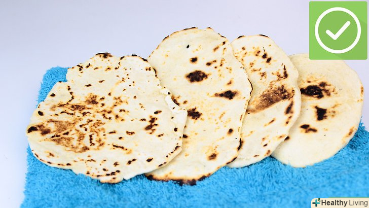 Нагрійте сковороду на середньому вогні.чавунна сковорода підійде найкраще, так як вона рівномірно і швидко розподіляє тепло.- Покладіть тортильї на сковороду і обсмажуйте протягом 30-60 секунд з кожного боку.поверхня тортильї буде виглядати трохи сухою. Спробуйте першу тортилью на смак, щоб визначити чи достатньо ви її обсмажували.