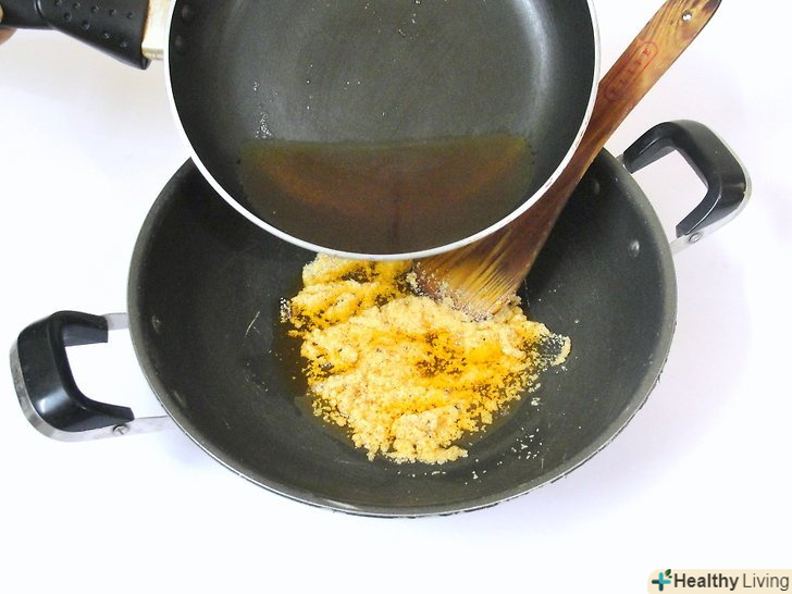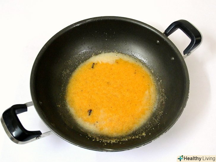 В іншій сковорідці змішайте цукор з водою і додайте харчовий барвник.