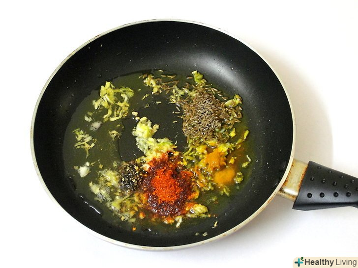 Додайте насіння кмину і інші сухі спеції в сковорідку.