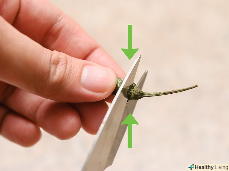 Видаліть стебло і насіння з перцю.візьміть ножиці або гострий ніж і зріжте верхівку чилі, щоб видалити стебло. Розріжте Чилі збоку і розкрийте його, щоб дістатися до насіння. Пальцями або ложкою видаліть насіння і жили.- Якщо хочете зробити соус більш гострим, можете залишити кілька насіння в перці, але врахуйте, що насіння погано розмелюються, тому їх все ж краще видалити.[7]