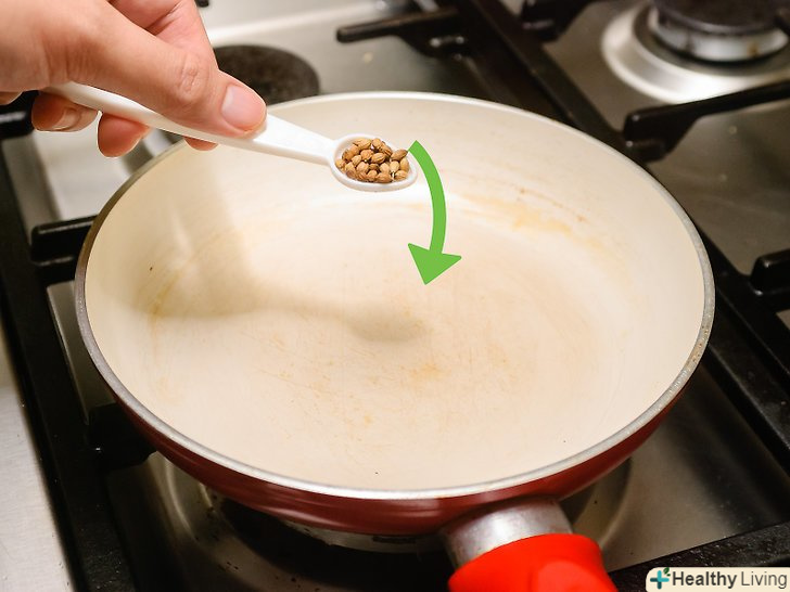 Обсмажте спеції.поставте суху сковороду на середній вогонь. Коли сковорода нагріється, додайте кмин, зіру і насіння коріандру. Обсмажуйте спеції 4 хвилини, часто помішуючи, щоб вони не згоріли.[9]- Коли насіння будуть готові, висипте їх в млин для спецій або ступку, додайте м'яту і подрібніть до утворення порошку.