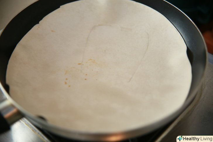 Готуйте тортилью на середньому вогні, переверніть один раз, щоб підсмажити до рум'яності з обох сторін.для прискорення процесу накрийте сковороду кришкою під час приготування.