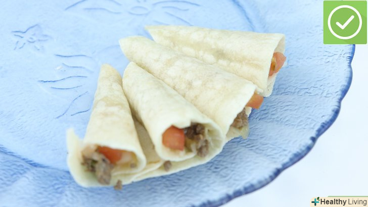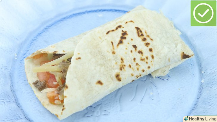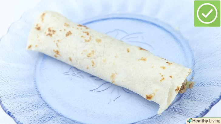 - Майте на увазі, що цим способом ви складіть тортилью не так щільно, так що він більше підходить для крупно нарізаної начинки на зразок м'яса і овочів.