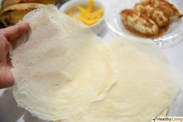 Розділіть тісто "люмпіа". листи «люмпіа " тонкі, як папір, їх складно розділити; будьте дуже обережні, щоб їх не порвати. Розділіть їх і викладіть, щоб підготувати для страви.- Можливо, Вам буде легше, якщо ви будете змочувати пальці теплою водою, щоб вони не прилипали до листів. Ви також спочатку можете обдати листи парою, щоб вони легше розділялися.[1]