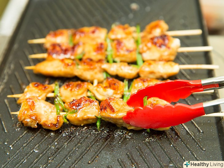 Традиційно якіторі готують на мангалі.намажте м'ясо соусом, поки ви чекаєте, щоб мангал був готовий до використання. Помістіть шампури на мангалі там, де сильний жар.[12] перевертайте кожні 2-3 хвилини і весь час пензликом наносите соус. М'ясо буде придатним до вживання, як тільки воно підрум'яниться з усіх боків.[13]