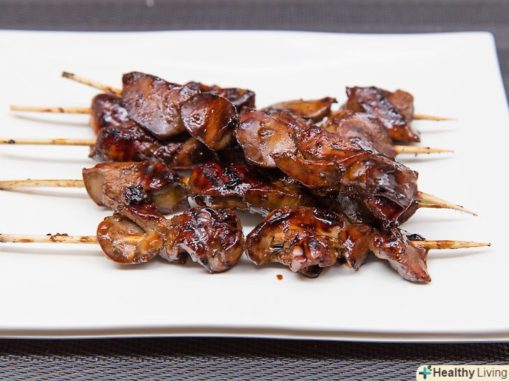 В Японії для приготування якіторі використовують всі частини курки, включаючи серце, печінку і шлунок.ви можете попросити їх у місцевій м'ясній крамниці. Всі ці частини готують як зазвичай, проте деякі з них готуються швидше за інших:- Смажте куряче серце всього кілька хвилин до коричневого кольору. Постарайтеся не висушити і не пересмажити.[16]