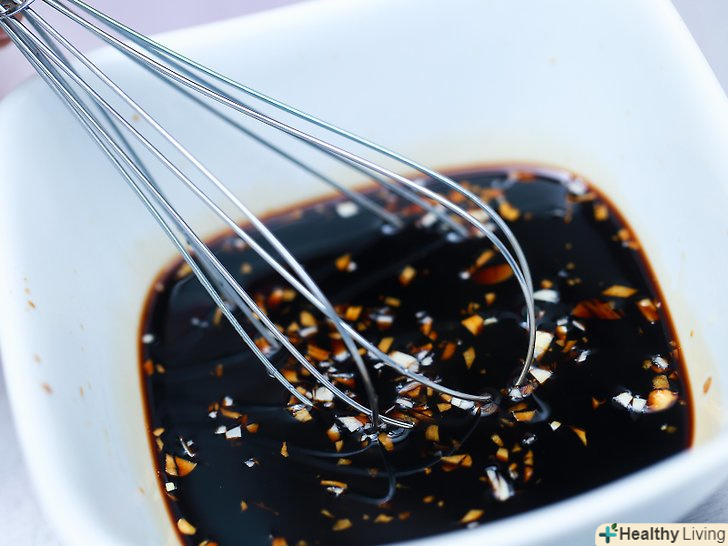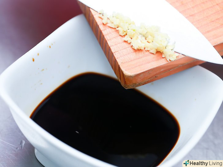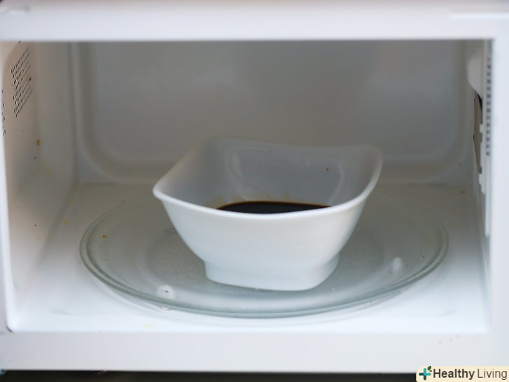Налийте соєвий соус і воду в миску, яка підходить для використання в мікрохвильовій печі. Додайте цукор. Ретельно перемішайте, щоб всі інгредієнти перемішалися.- У миску повинно міститися, як мінімум 4 склянки (1 літр) рідини. І хоча цей обсяг перевершує робочий в два рази, це необхідно, щоб при нагріванні соус не втік.