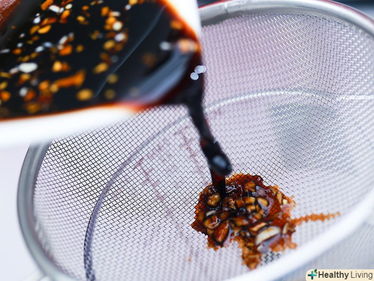 Процідіть соус, щоб видалити всі спеції.[5] перелийте кетсап-Маніс через друшляк або сито, щоб прибрати всі спеції. Для проціджування тягучого густого сиропу може знадобитися трохи більше часу.- Всі тверді інгредієнти, такі як аніс, часник і імбир, будуть видалені з соусу.