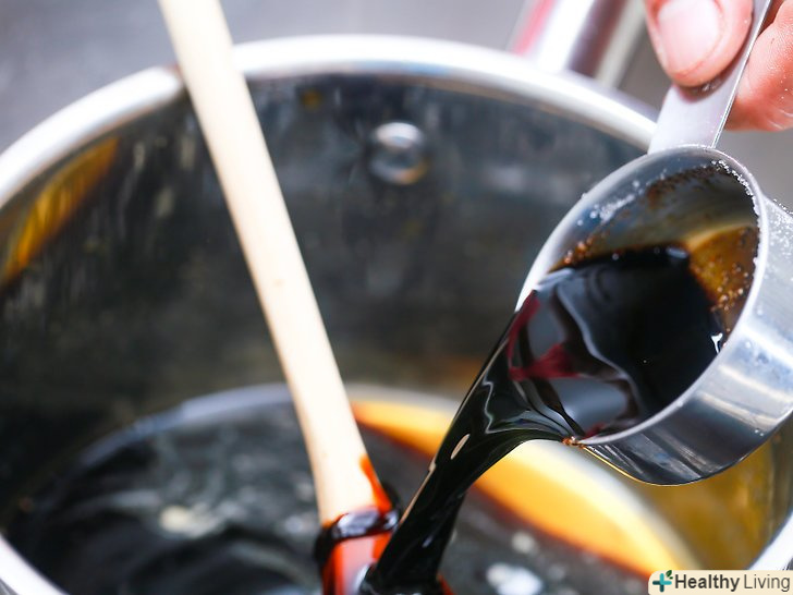 Додайте соєвий соус і приправи.додайте в каструлю соєвий соус, імбир, часник і зірочку анісу, акуратно перемішайте всі інгредієнти.- Будьте обережні, додаючи інгредієнти. Навіть незважаючи на те, що сироп вже трохи охолов, ви можете обпектися.
