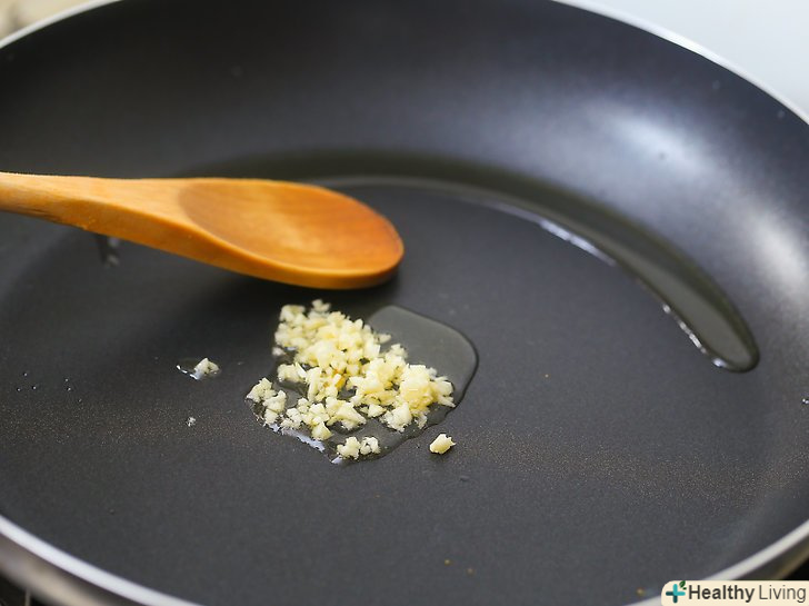 У великому сотейнику або каструлі розігрійте оливкову олію і злегка обсмажте часник протягом 1 хвилини.