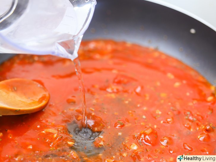 Додайте до часнику інші інгредієнти, за винятком води.додайте цибулю, орегано, порошок чилі, базилік, мелений перець, сіль, кмин, петрушку, сальсу і томатний соус.