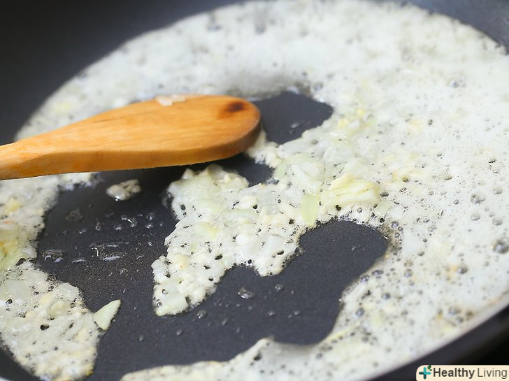 У великому сотейнику або каструлі розігрійте оливкову олію і злегка обсмажте цибулю і часник.цибуля і часник повинні стати прозорими, а не підсмажитися.