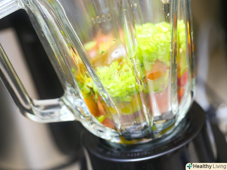 Поки цибуля і часник обсмажуються, змішайте фізаліс тортилло, зелений перець, перець халапеньо і кінзу в блендері або кухонному комбайні.якщо інгредієнти погано перемішуються, то додайте трохи курячого бульйону, щоб допомогти процесу.