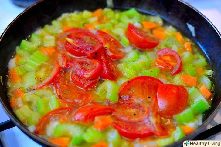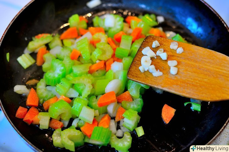 Додайте часник і готуйте овочі ще 10 - 15 хвилин, або поки цибуля не стане прозорим, а овочі стануть м'якими.