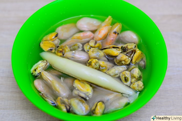 Переконайтеся, що морепродукти добре очищені і вимиті. Виділіть час, щоб обполоснути і вимити Мідії і молюски. Завдяки цьому у вашому супі не буде плавати пісок і сміття.
