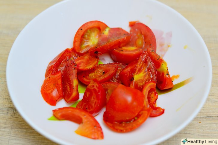 Посоліть і поперчіть помідори.